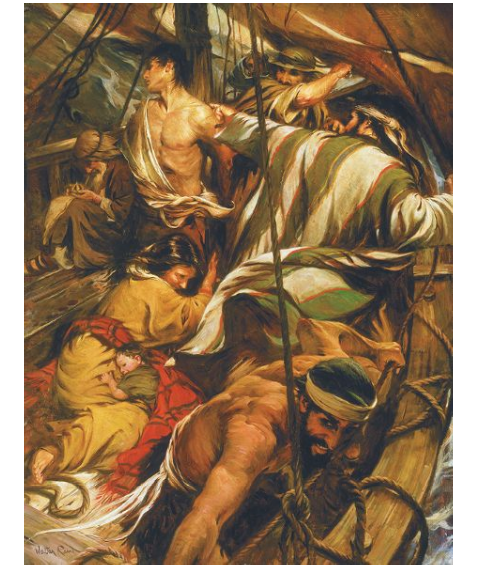 In the picture of the ship’s arrival in the promised land, I added a bit of interesting