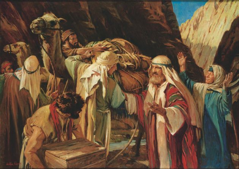 The Book of Mormon says that after the sons returned with the plates of brass, Lehi gave thanks unto the Lord. “And after they had given thanks unto the God of Israel, my father, Lehi, took the records which were engraven upon the plates of brass, and he did search them from the beginning.”