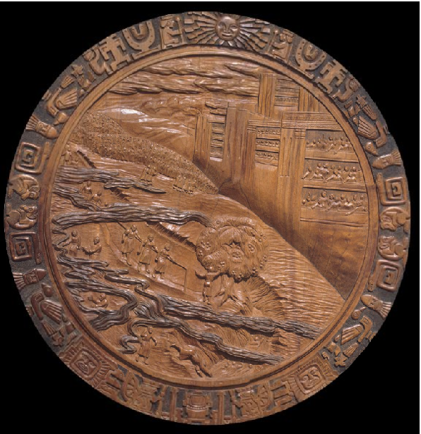 “Behold, I have dreamed a dream” (1 Nephi 8:2), Lehi proclaimed to his family. He then described a tree whose bright, white fruit filled his soul with great joy. With the feeling of a tender parent, Lehi entreated his family to partake of the fruit of the tree—the love of God. In this piece, the tree of life feeds on the fountain of living waters. Its gnarly trunk, rooted in the rock of revelation, gives foothold to all who climb to partake of the fruit. Light enlivens the roots, leaves, and fruit. Righteous desire starts us on the path; joy is our reward.