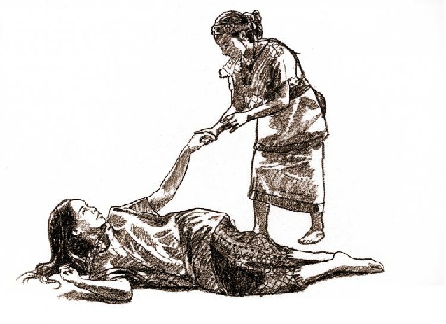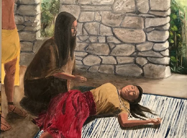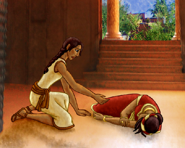 I love the story of Abish because it shows that even when something goes wrong, the Lord can still have a purpose in it. Though Abish was brought to tears when her actions of gathering others to witness the miracle had seemed to backfire, many were present to witness the testimony of the queen after the queen woke up. This led to the conversion of many. Abish played a vital role. Here Abish is reaching to see if she can wake the queen.