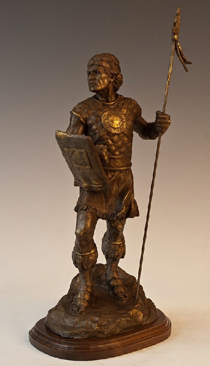 This piece was inspired by my community. During the summer of 2012, well over 2000 young men dressed up and marched as stripling warriors in our Pioneer Day parade.When I heard about the plans to reenact the march of the stripling warriors as a part of the parade, I was very excited. A thrill went through me and I wanted to create a sculpture to commemorate what I knew would be memorable event. It was my hope that a small statue might serve as an effective remembrance to those who participated. One thing that surprised me was that how many mothers came to my studio to purchase these for their sons. I was able to meet many mothers who deeply desired the protection that the stripling warriors received for their own families.
