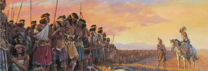 Helaman, a Nephite prophet and warrior, stands in front of some of the 2060 young Lamanite warriors who have rallied to defend their adopted nation. Faithful and exactly obedient in all things, their miraculous preservation through some terrible battles was an inspiration to their fellow warriors as well as to the man who so ably led them, Helaman.