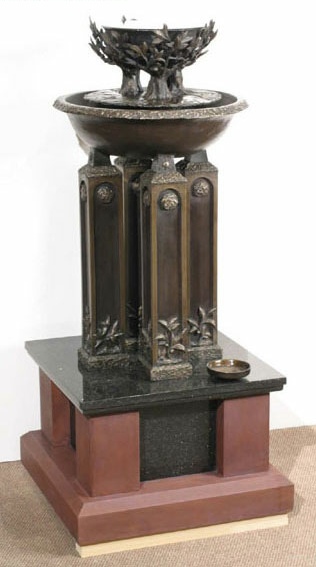 This working fountain presents the tree of life as a fountain of living water and invites all to drink and never thirst again. This work contains symbolic representations of Christ, the Godhead, man's relationship to the Godhead, and the fruit of the Tree of Life. The themes depicted in the fountain were inspired by this scripture: "And it came to pass that I beheld that the rod of iron, which my father had seen, was the word of God, which led to the fountain of living waters, or to the tree of life; which waters are a representation of the love of God; and I also beheld that the tree of life was a representation of the love of God" (1 Nephi 11:25).