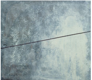 The artist concentrates on one single element of Lehi’s dream, the iron rod, that leads to the glowing figure representing the Savior. (Photograph by R. T. Clark.)