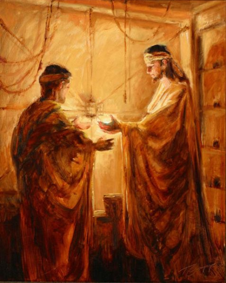 This painting depicts the Brother of Jared placing one of the lighted stones into one of his people's ships. Just as great faith was required of the Brother of Jared to have light and to see the Lord, we must also have great faith if we are to see the Lord's hand in our lives and to see our paths lighted by His Spirit.