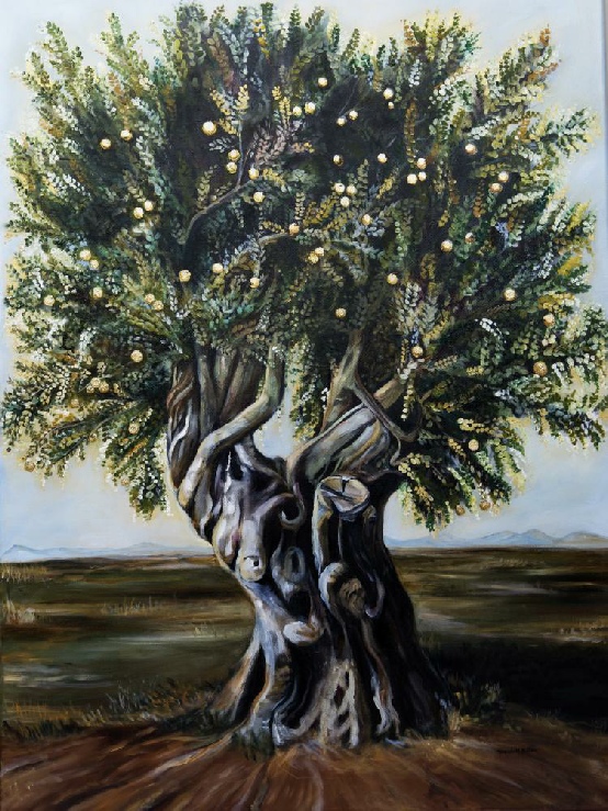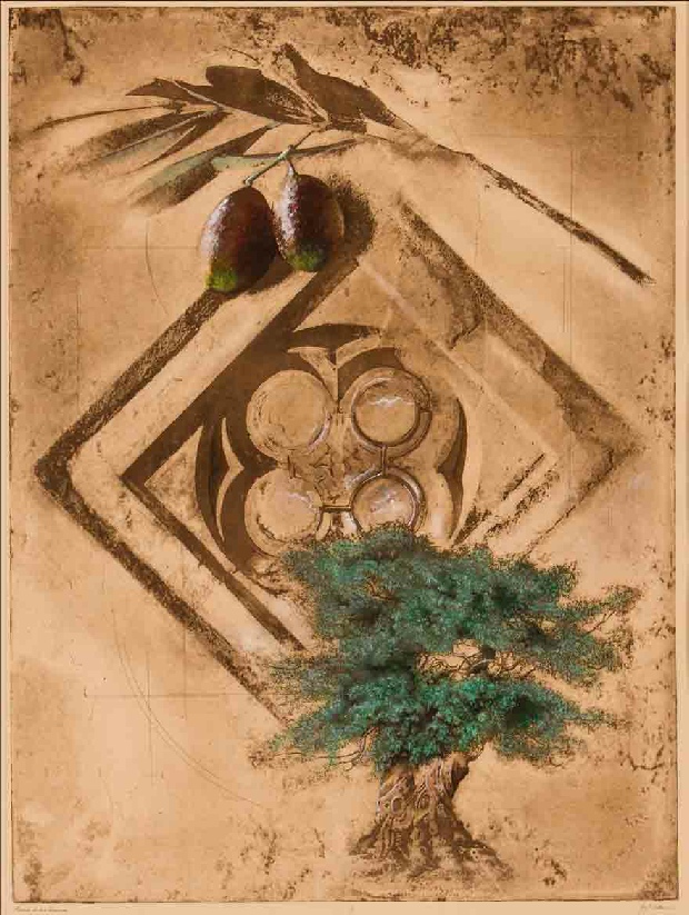 This piece depicts the Allegory of the Olive tree and the tribes of Israel. It shows how the tribes of Israel are intertwined in the olive tree and how beautiful the Olive Tree analogy is.