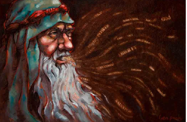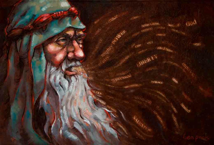 The message of this painting is that Christ is the source we look to for our salvation. Prophets have testified of Christ’s mission and His saving role throughout the ages. Prophets today repeat what has been said concerning Him, prophesy of His future coming, and teach us what He would have us do. The prophet in this painting represents all the prophets throughout time. The words coming from his mouth are statements found in the scriptures about Christ. How marvelous are God’s works in giving us prophets to lead us to Him.